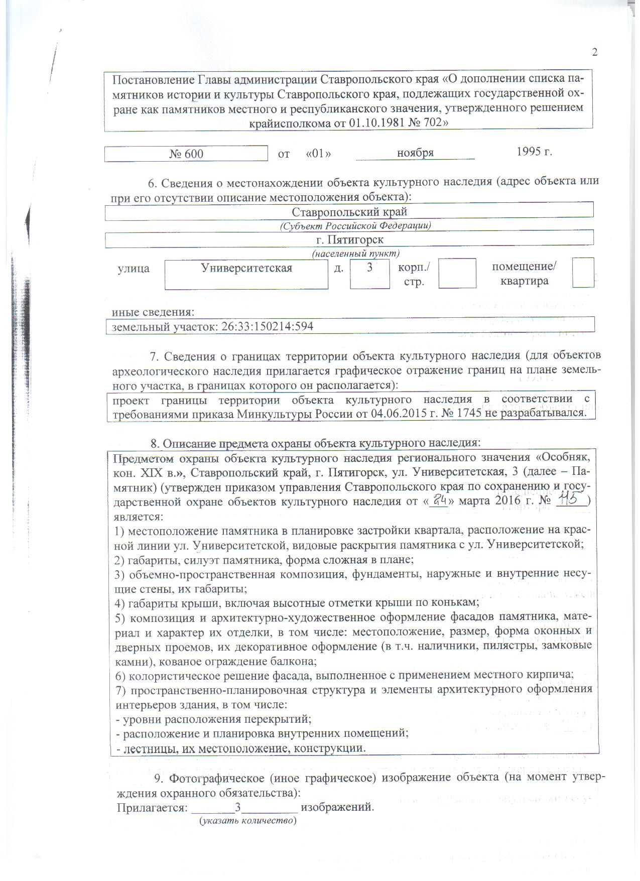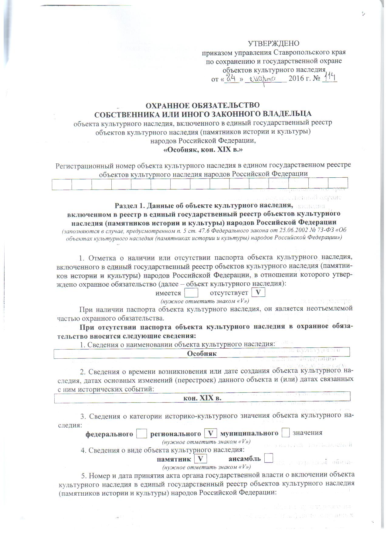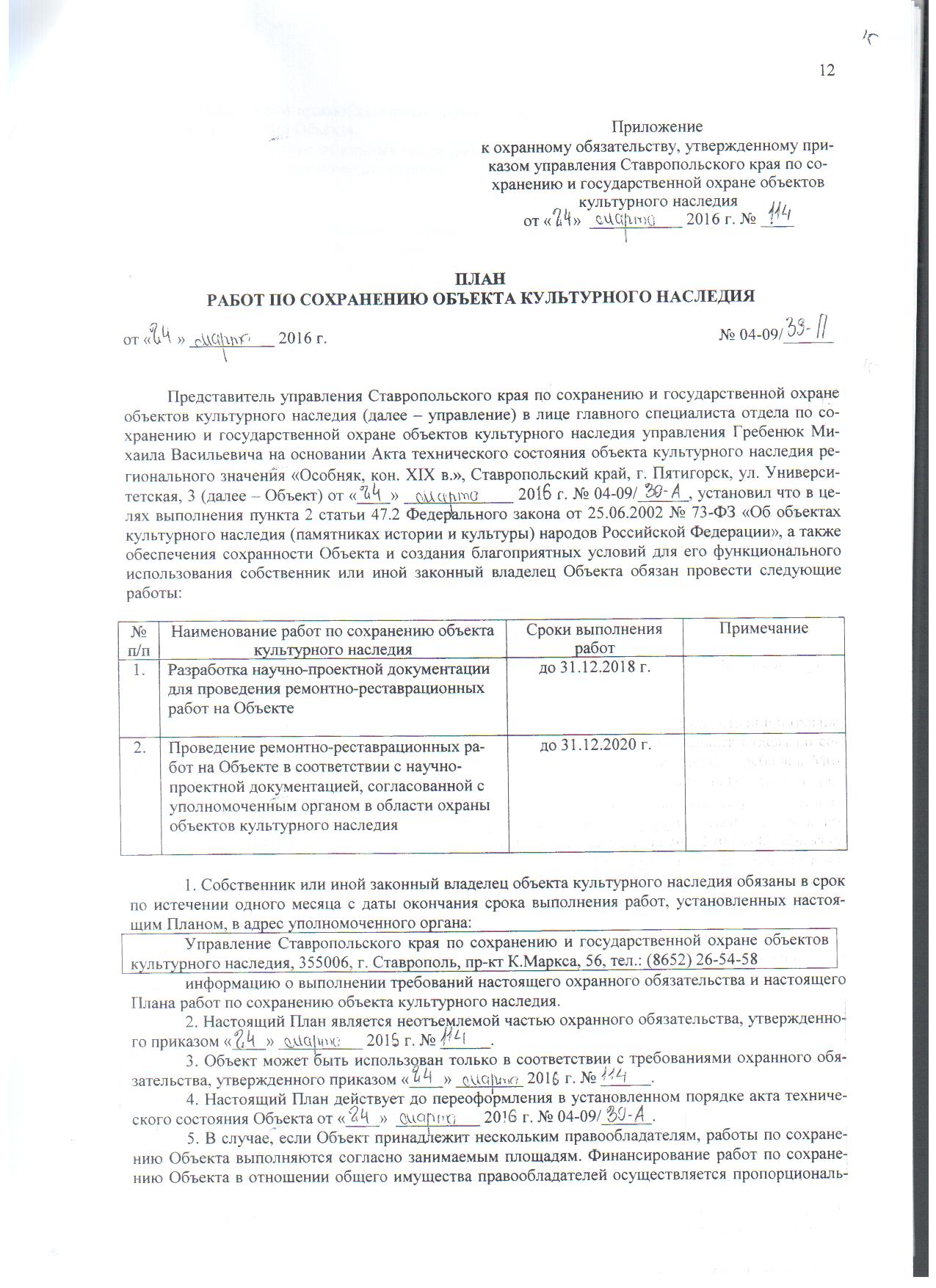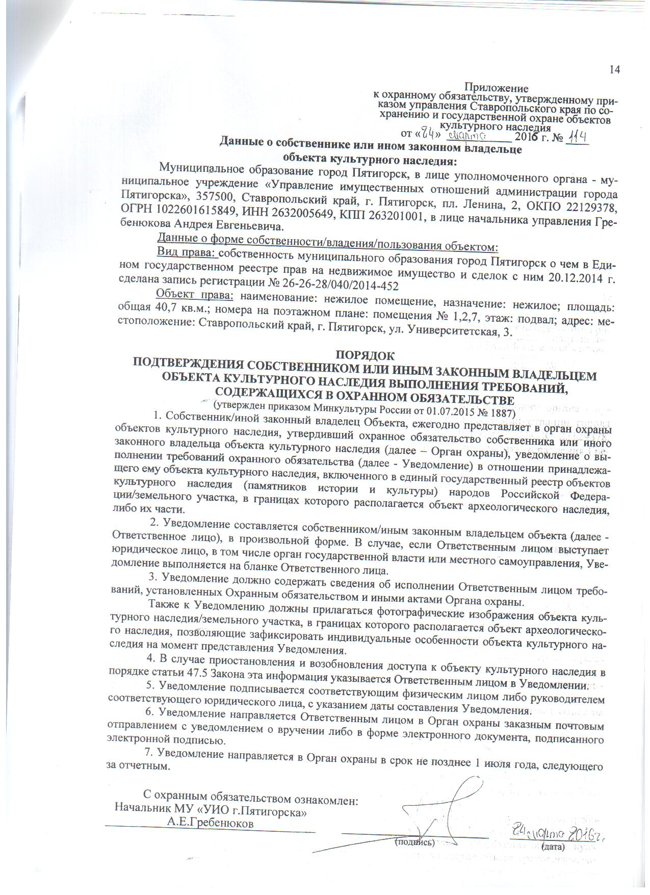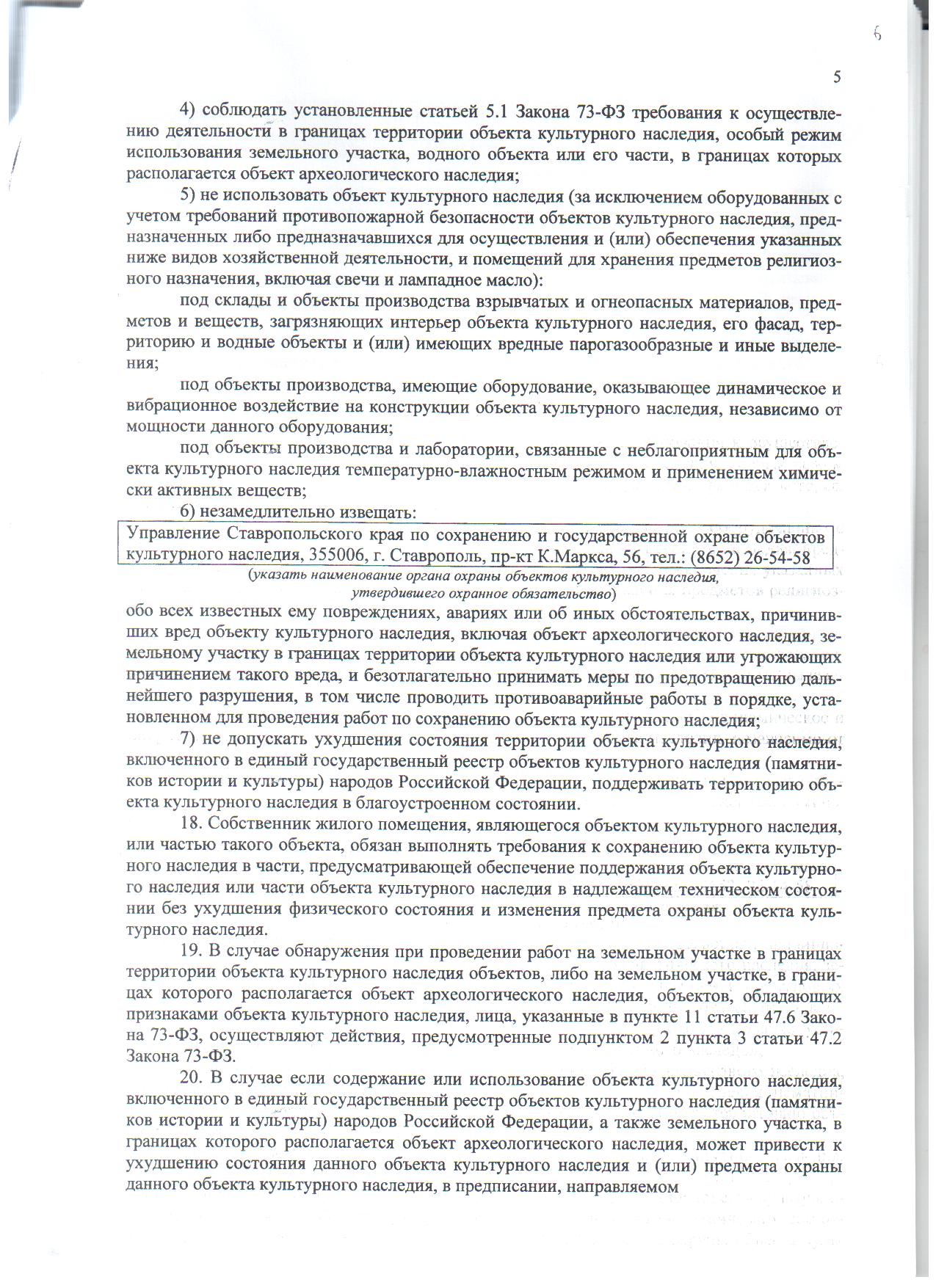 Объект может быть использован только в соответствии с требованиями Охранного обя­зательства.