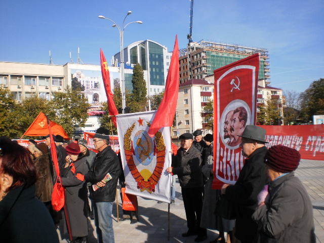 Во главе колонны ( после настойчивого диалога ВКПБ с КПРФ, попытавшаяся оттеснить ВКПБ) рядом с Союзом Советских Офицеров Кубани были и большевики с Штандартом ВКПБ и Красным Флагом с Серпом и Молотом во главе с секретарём Краснодарского краевого комитета ВКПБ т. Тютюнниковым Н. А.. Распространялись листовки: «18 лет годовщине защиты Верховного Совета РСФСР», «Выборам в Госдуму-активный бойкот!», газеты: «Серп и Молот». У «Вечного Огня Славы» состоялся большой митинг…