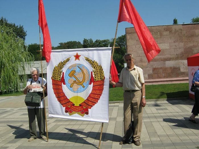 Был выставлен Красный Флаг с Серпом и Молотом. Распространялись листовки: ”Обращение И. В. Сталина к народу 2 Сентября 1945 года “,газеты :”Серп и Молот”,” Рабоче - крестьянская правда.”На пикете присутствовали и другие представители партий и движений.