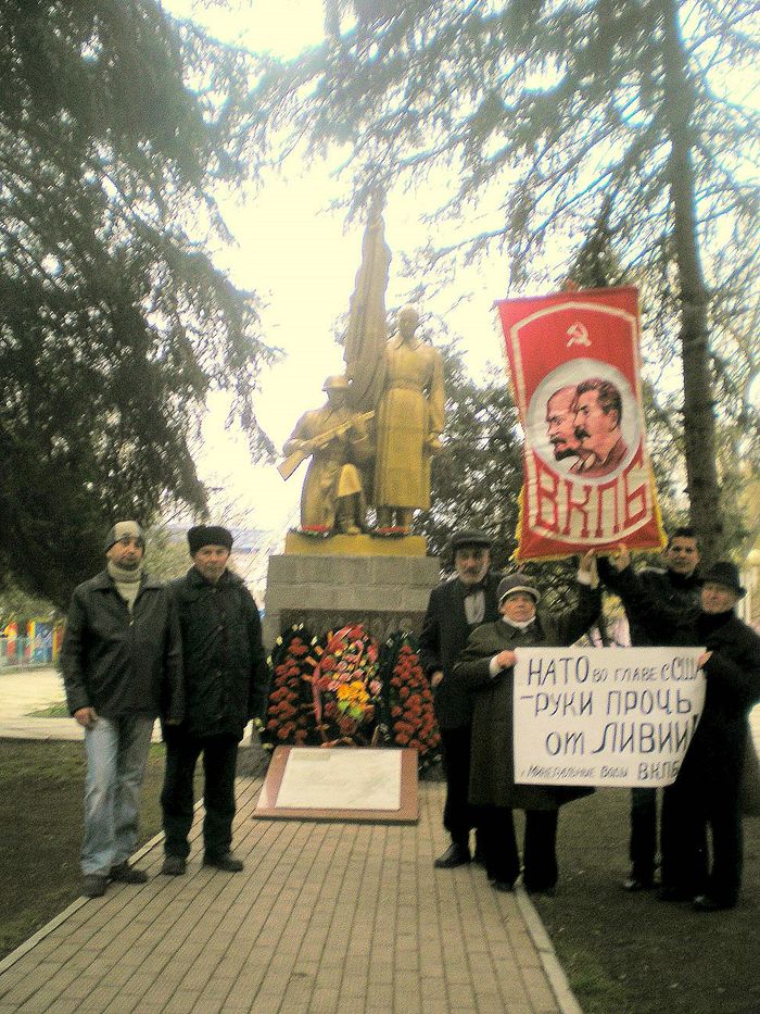 ВКПБ Северского района (Краснодарский край) 30 марта провела в районном центре - Северской ПИКЕТ, против военной интервенции в Ливии со стороны ведущих империалистических государств, а также против социального ухудшения положения жителей района. Мы солидарны с народом Ливии и его лидером Муаммаром Каддафи в их справедливой борьбе за свободу и независимость своей страны! Мы требуем прекращения агрессии НАТО против Ливии!