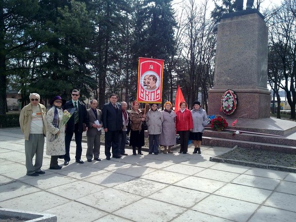 В связи с данной исторической датой активисты ВКПБ в районном центре Северской провели 2-х часовой пикет у памятника В.И. Ленина. Мы вместе с Лениным и Сталиным пикетировали главного предателя и разрушителя СССР, а также повышение цен на всё и вся, низкие зарплаты в районе и непредоставление садиков детям и др.