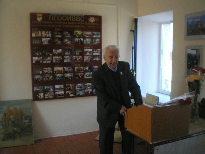 Затем перед собравшимися выступил Председатель организации т. Николай Тихонович Литвиненко, рассказавший о деятельности организации за десять лет и  по патриотическому воспитанию молодёжи и т.д.