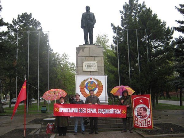 Большевики на митинге выставили свои красные флаги с серпом и молотом,транспоранты :" Мы- за Советский Союз!", "Герб СССР". Распространялись газеты и листовки.Были возложены цветы к памятнику В.И.Ленина. Перед собравшимися выступили товарищи Францев В.А., Губанов Кирилл и другие товарищи. Была принята резолюция.