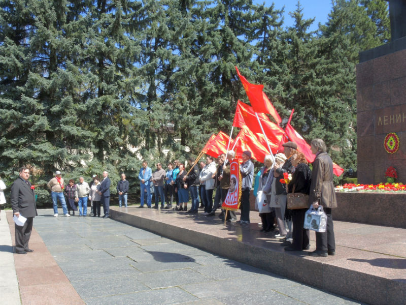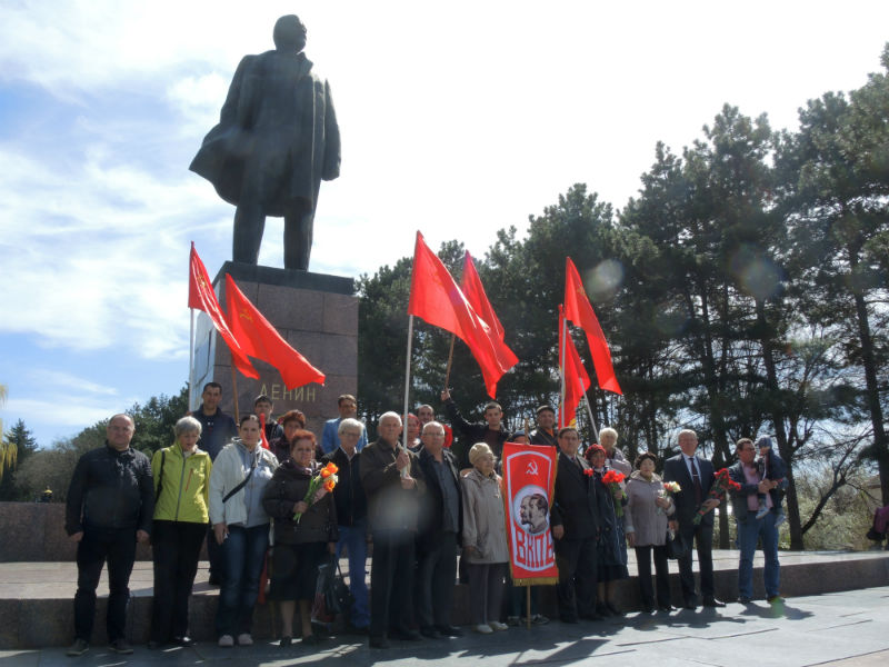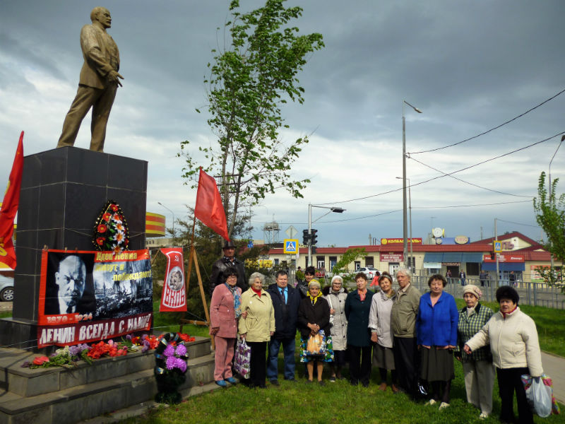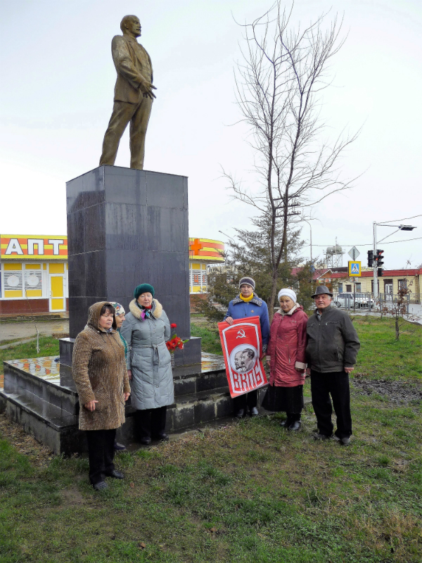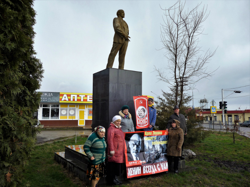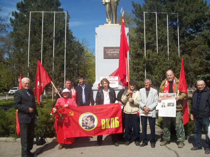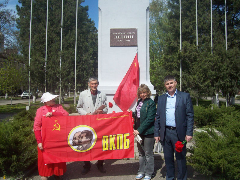 22 апреля в день 148-й годовщины со дня рождения Владимира Ильича Ленина, активисты ВКПБ, совета ветеранов, провели санкционированный ПИКЕТ, с целью популяризации в массах марксистко-ленинской идеи в современных условиях и советской, социалистической истории. В знак уважения и любви к гению человечества, мы возложили живые цветы и венки к памятнику В.И. Ленину, и сфотографировались на память на фоне большевистских символов под лозунгами: «Идеи Ленина живут и побеждают! Ленин Всегда с нами!»