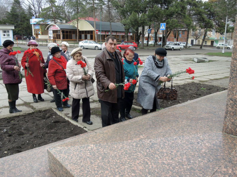 Возложение живых цветов и венков к памятнику В.И. Ленину в посёлке Ильском Краснодарского края.