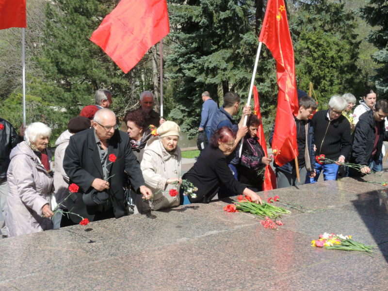 Государственных красных флагов с серпом и молотом СССР на митинге нет, нет портретов главнокомандующего Рабоче-Крестьянской Красной Армией Иосифа Виссарионовича Сталина – нет и победы над немецко-фашистскими войсками в городе Пятигорске!