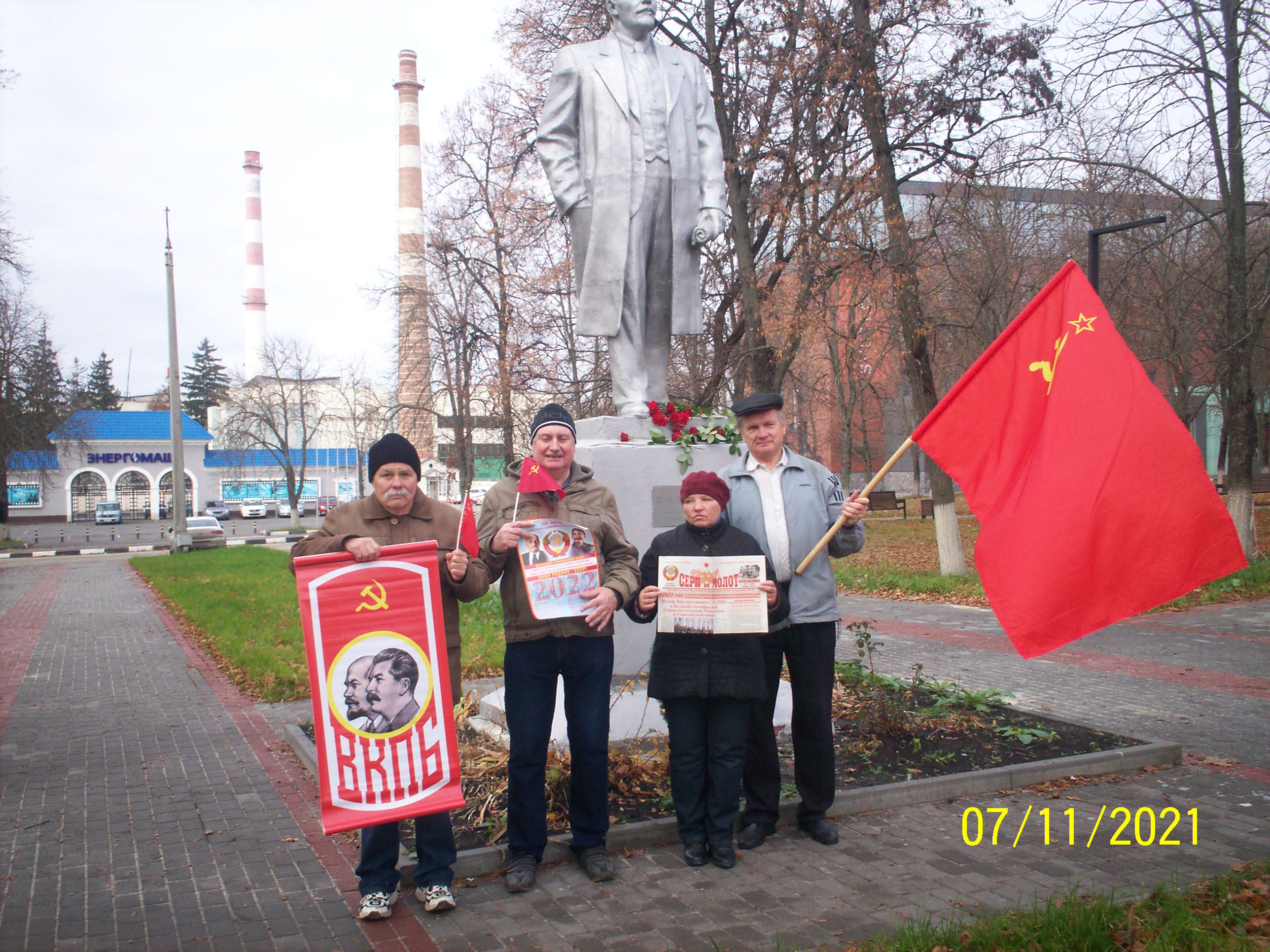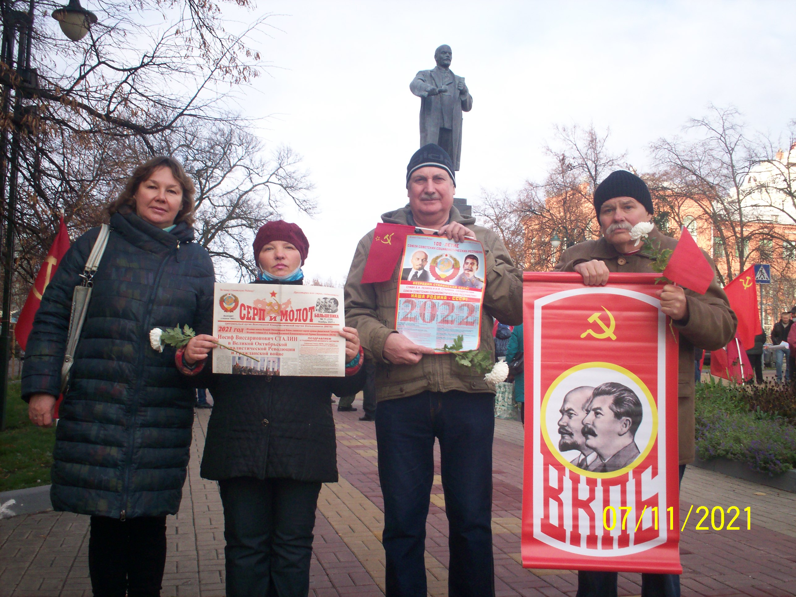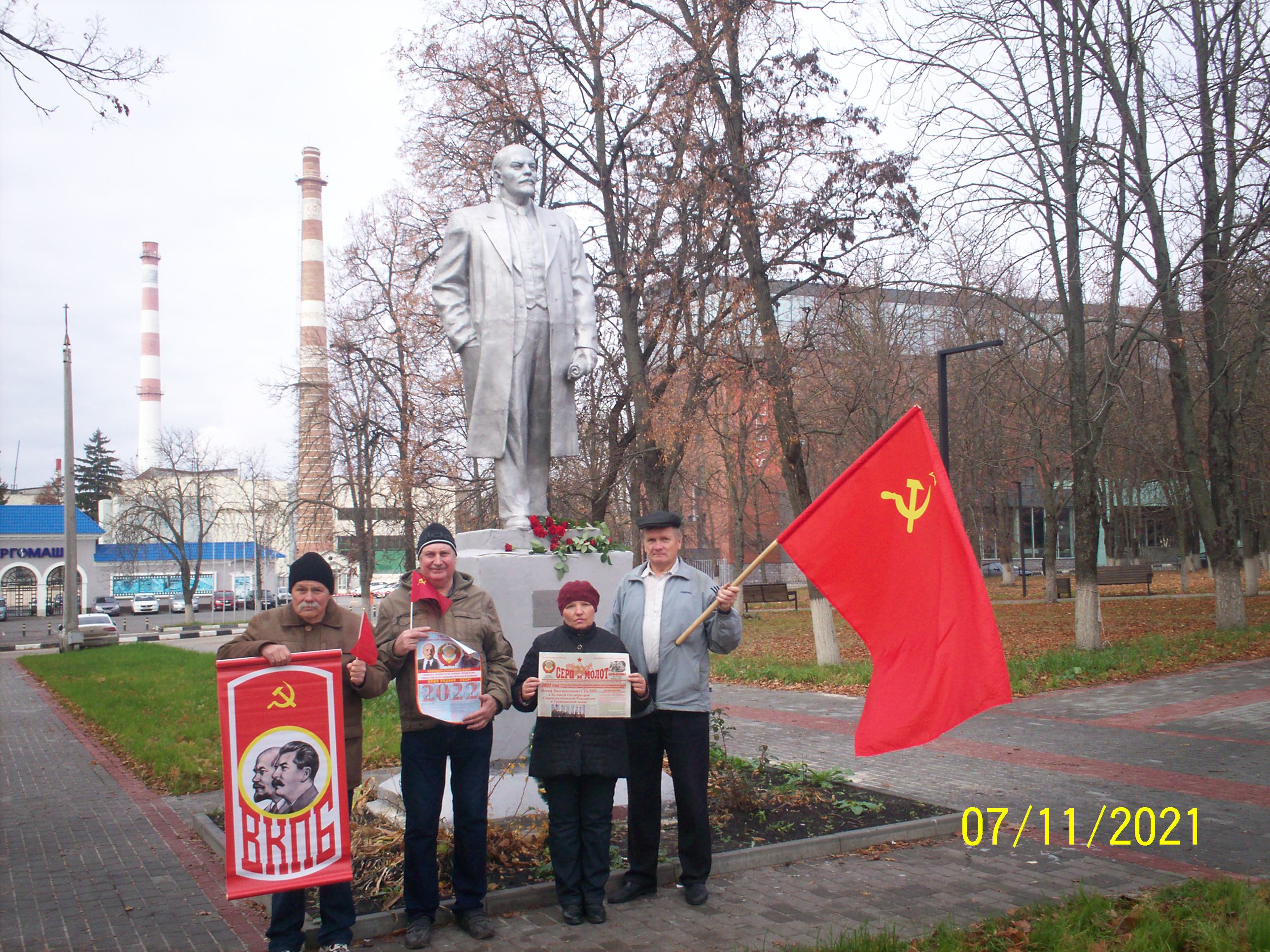 Представители партийных организаций ВКПБ г. Пятигорска 7 ноября 2021 г. возложили цветы к подножию памятника В.И. Ленина, на пл. В.И. Ленина в честь 104-й годовщины Победы Великой Октябрьской Социалистической Революции и 30- летия создания 8 ноября 1991 г. Н.А. Андреевой Всесоюзной Коммунистической Партии Большевиков.
