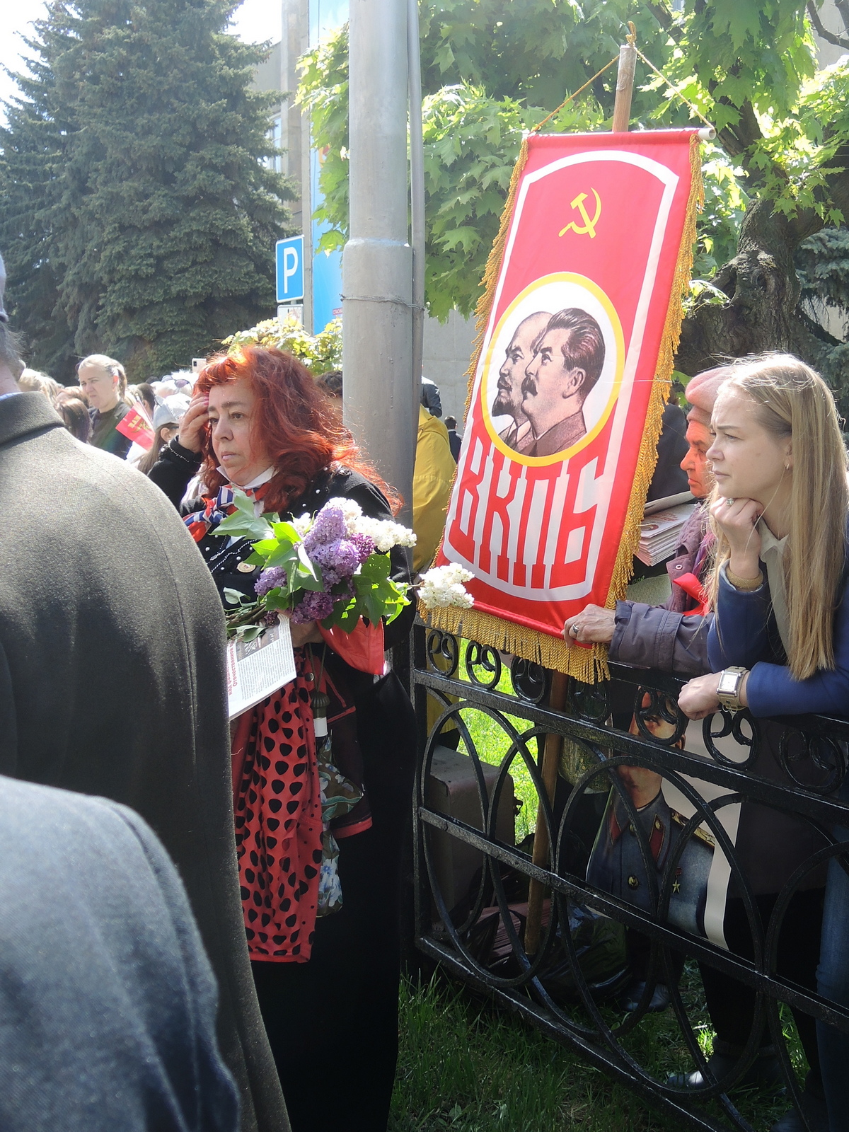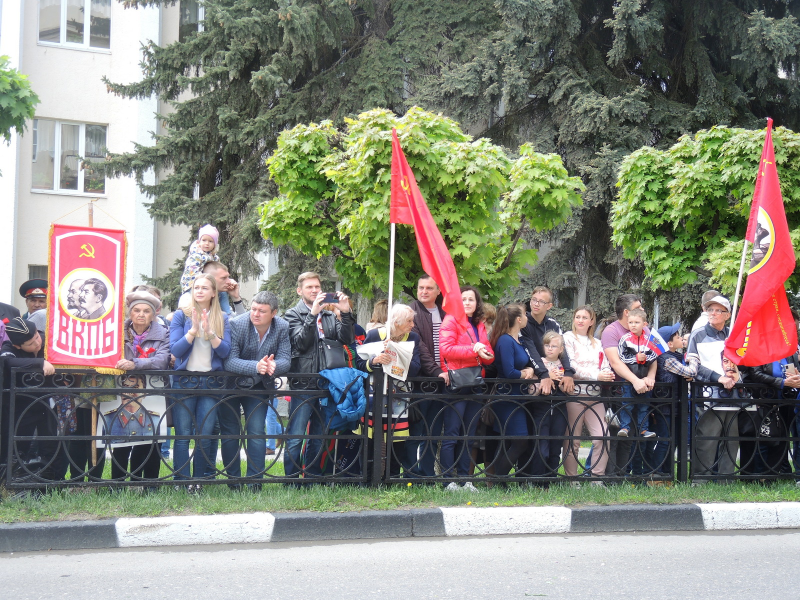 Большевики приняли участие, выставив вдоль движения военных подразделений и техники: Штандарт ВКПБ, красный флаг СССР с серпом и молотом, красный флаг ВКПБ с зеркальным изображением вождей В.И. Ленина и И.В. Сталина. Распространялась газета №5 «Серп и Молот Большевика», велась агитационная работа…