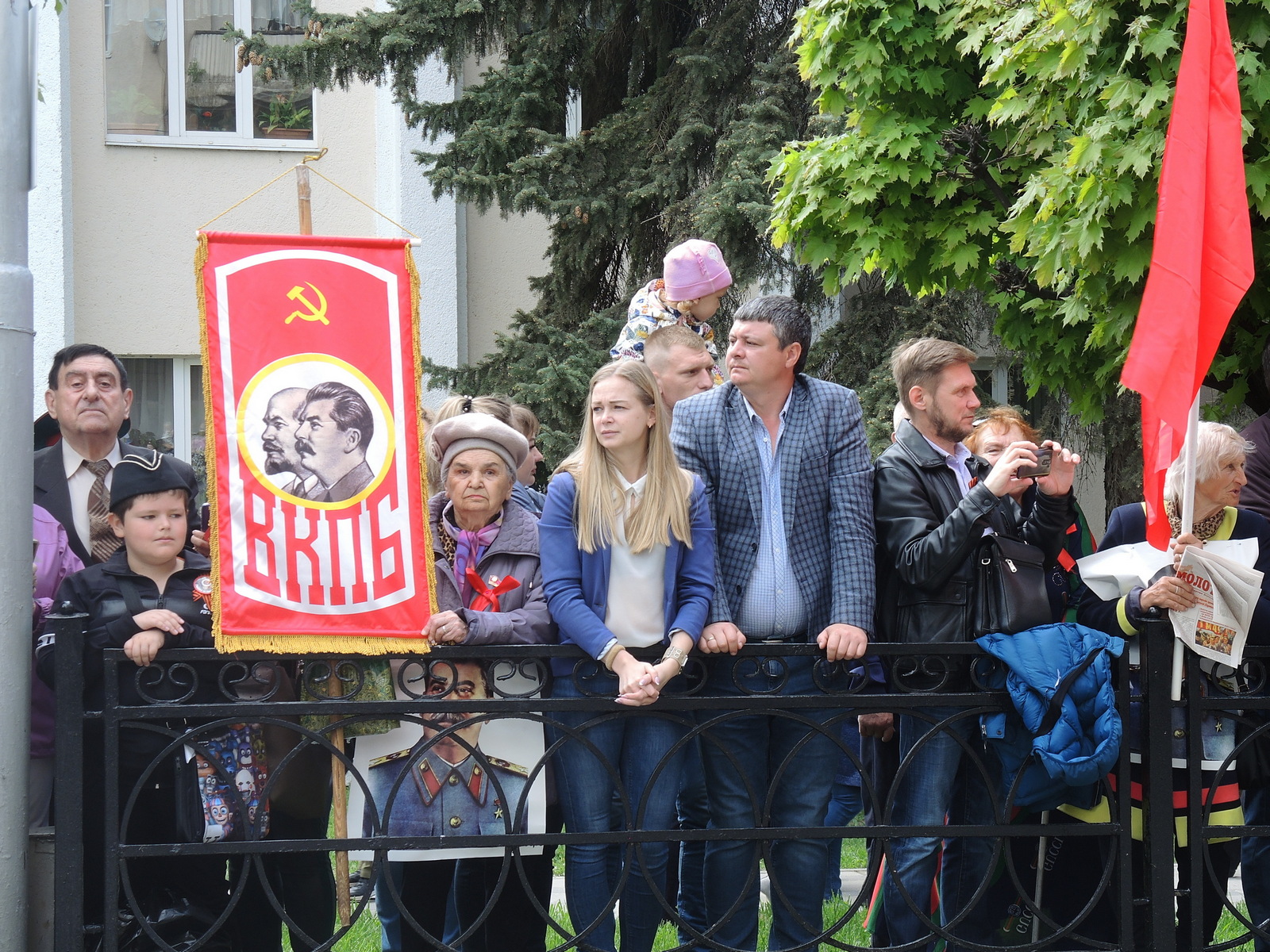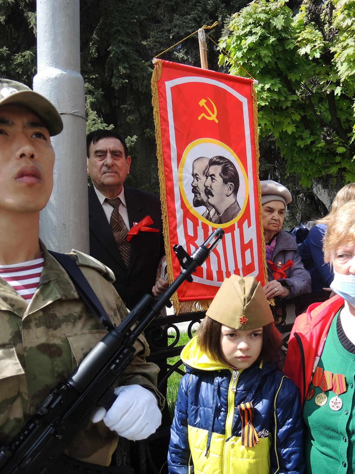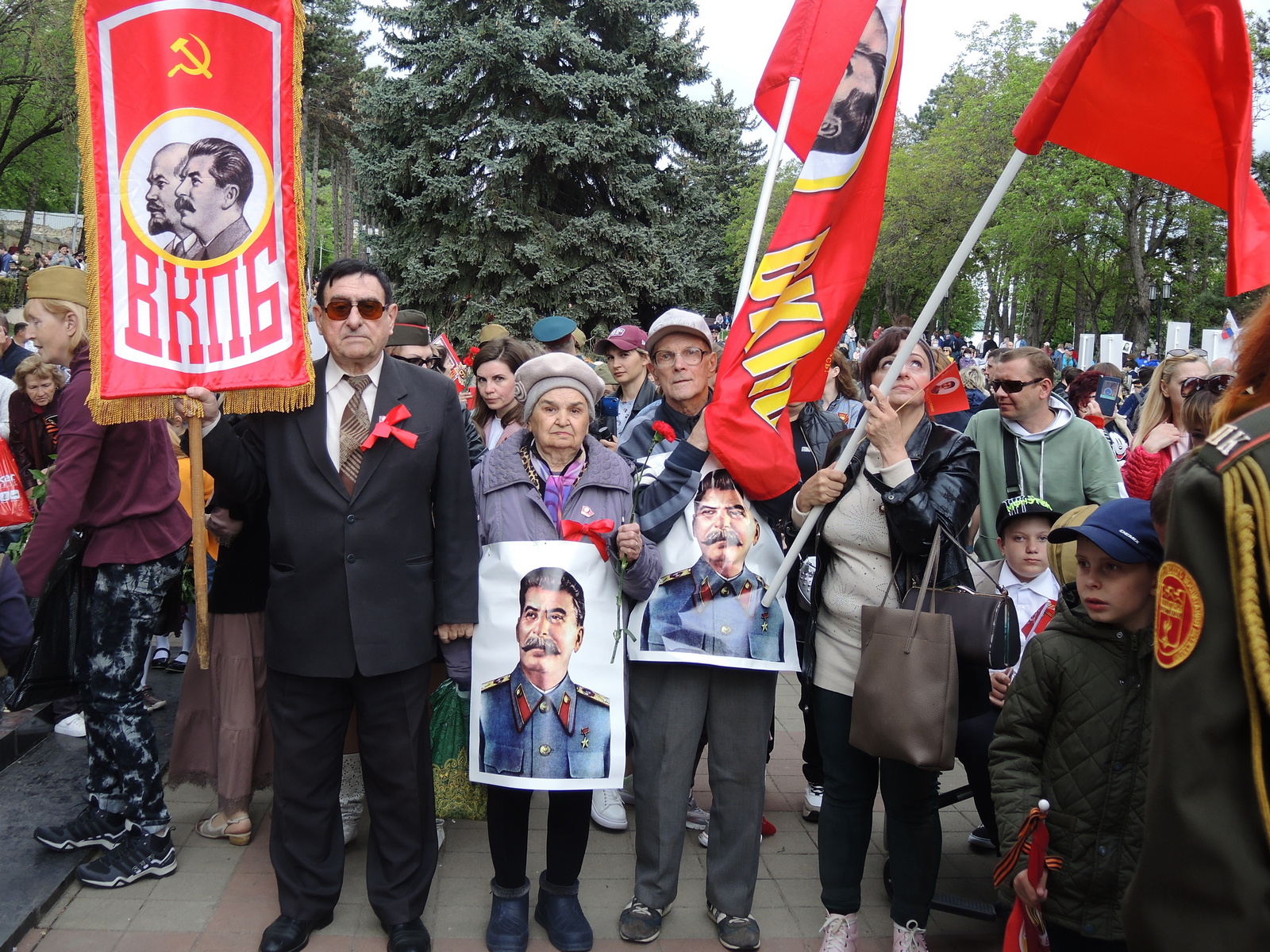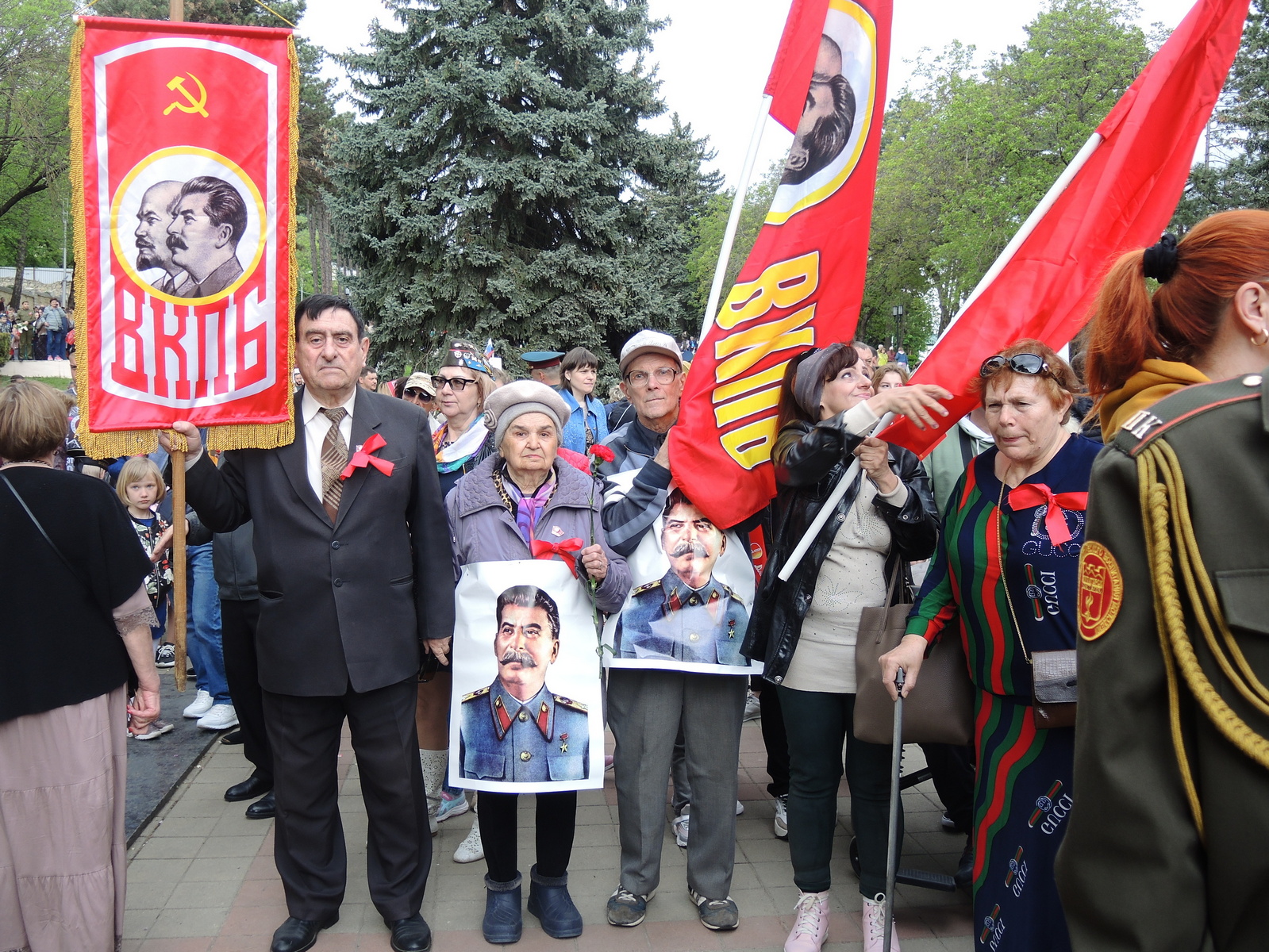 После военного парада большевики возложили цветы к «Огню Вечной Славы» и к подножию памятника В.И. Ленина. Жители города тепло приветствовали большевиков и фотографировались на фоне вождей В.И.Ленина и И.В. Сталина…