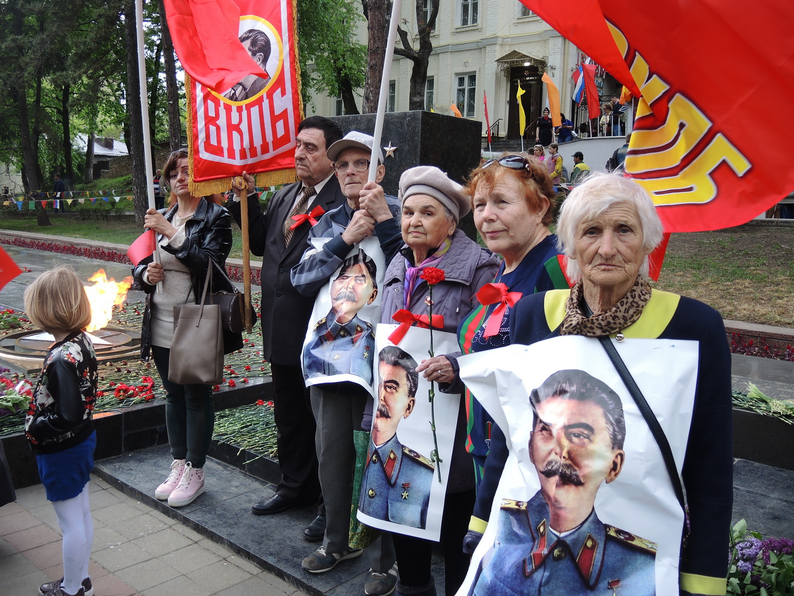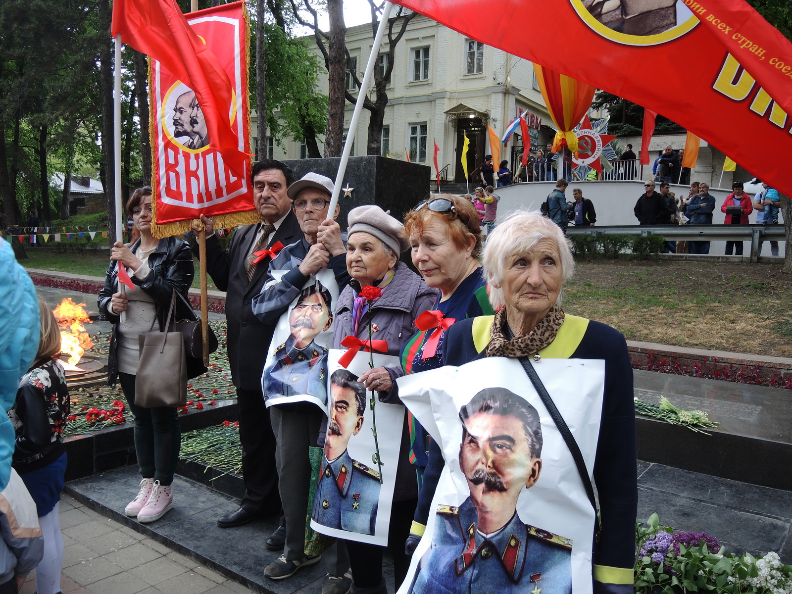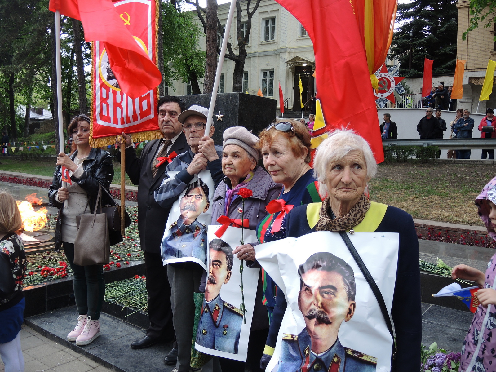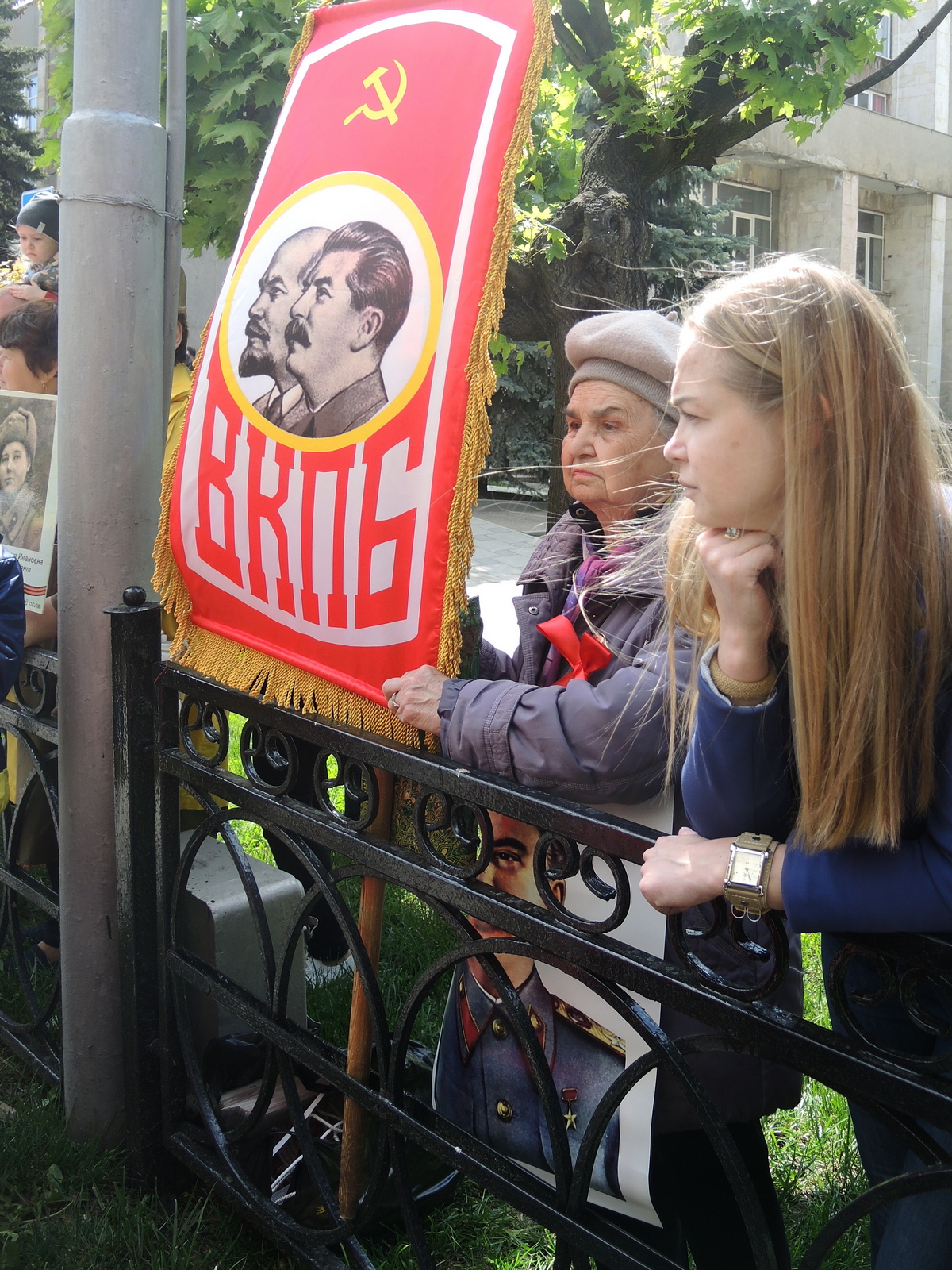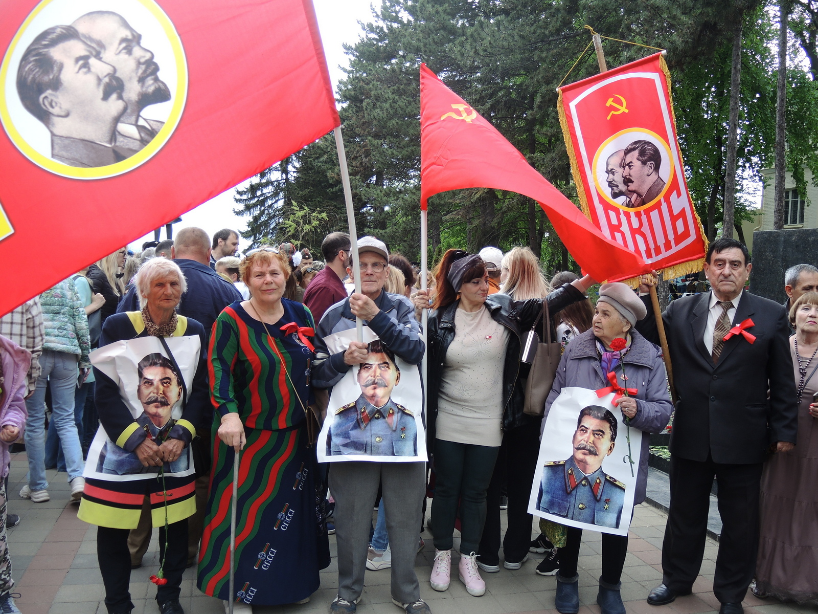 После военного парада большевики возложили цветы к «Огню Вечной Славы» и к подножию памятника В.И. Ленина. Жители города тепло приветствовали большевиков и фотографировались на фоне вождей В.И.Ленина и И.В. Сталина…