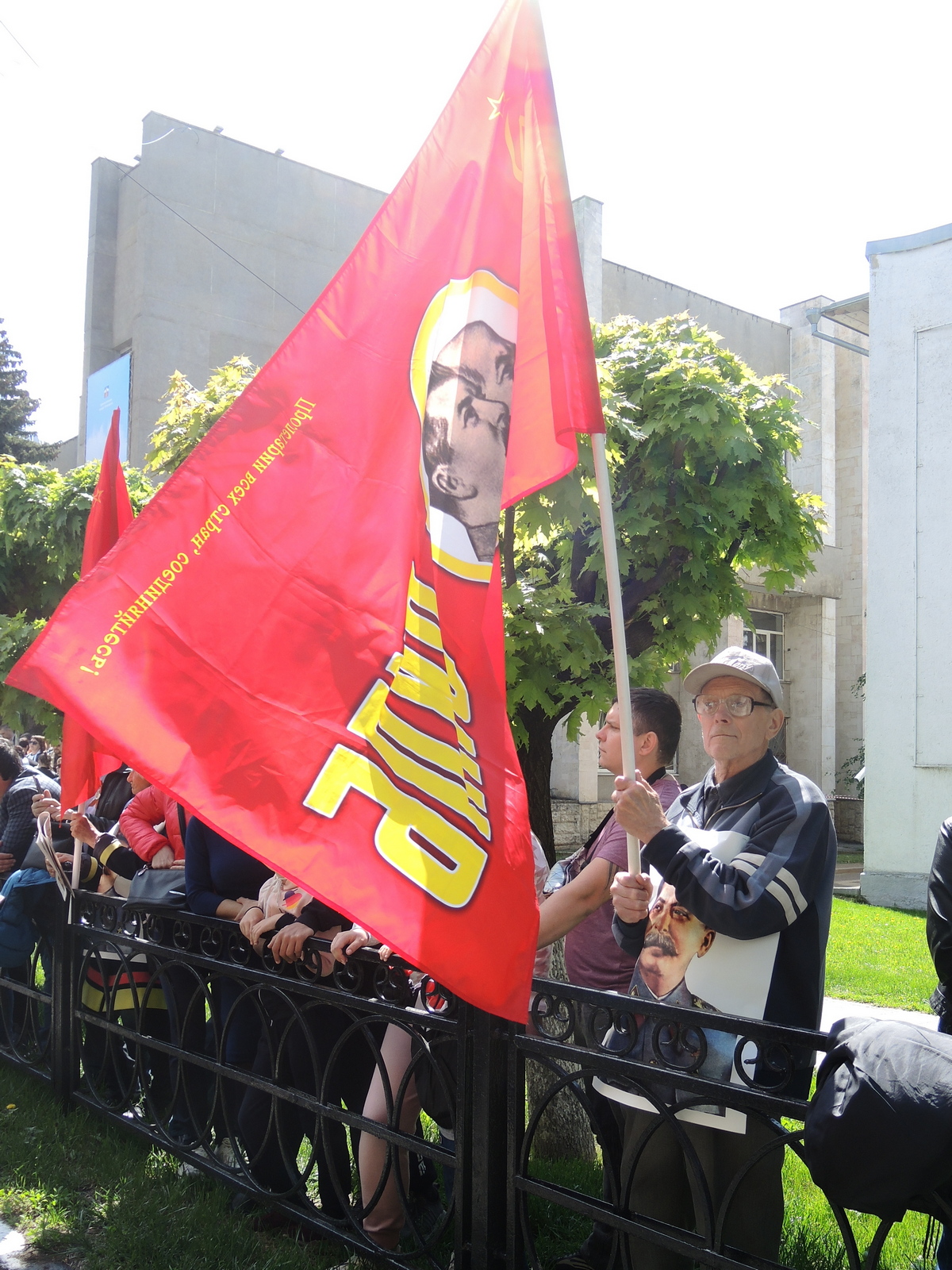 Были выставлены: Штандарт ВКПБ, красный флаг ВКПБ с зеркальным изображением вождей В.И. Ленина и И.В. Сталина, красный флаг СССР с серпом и молотом.